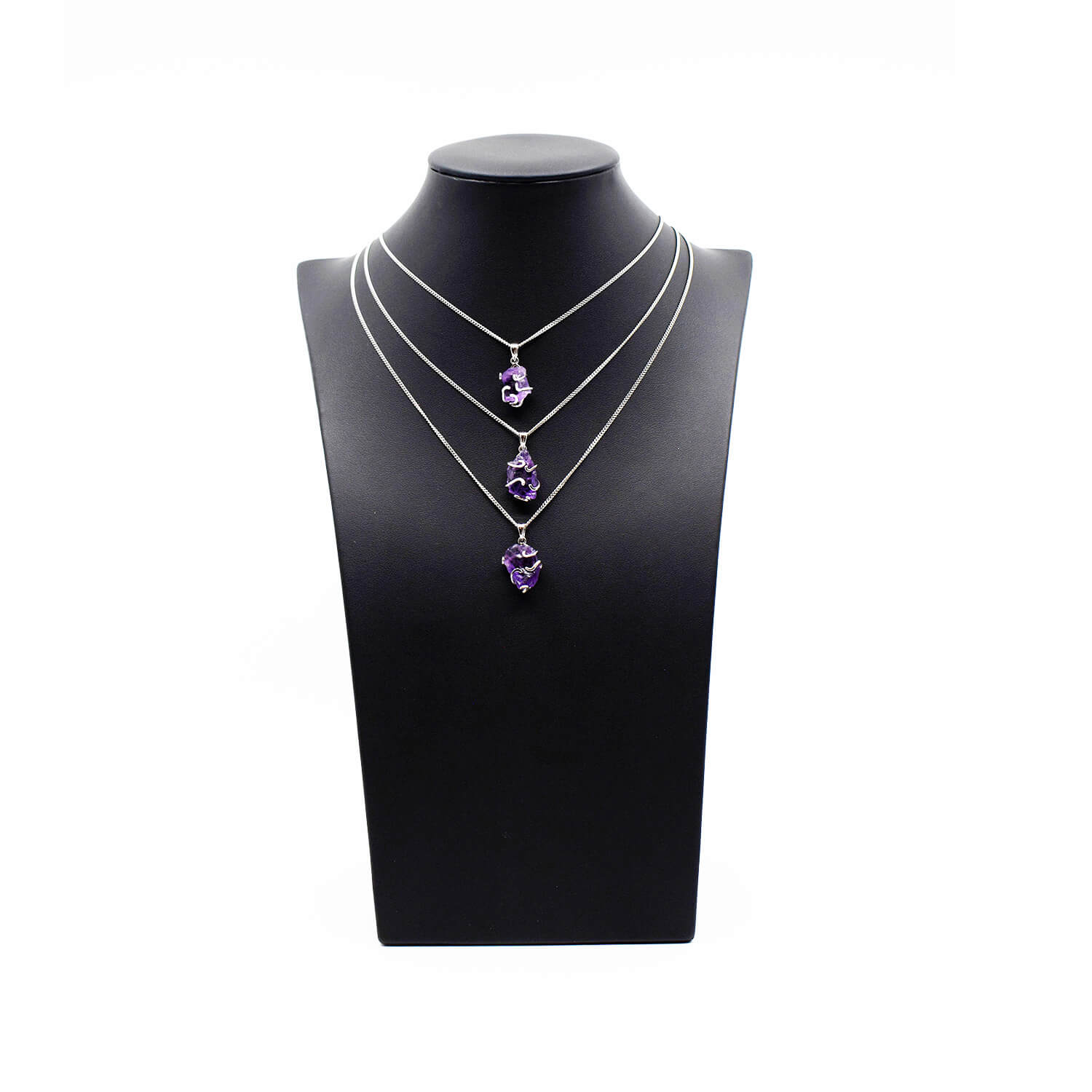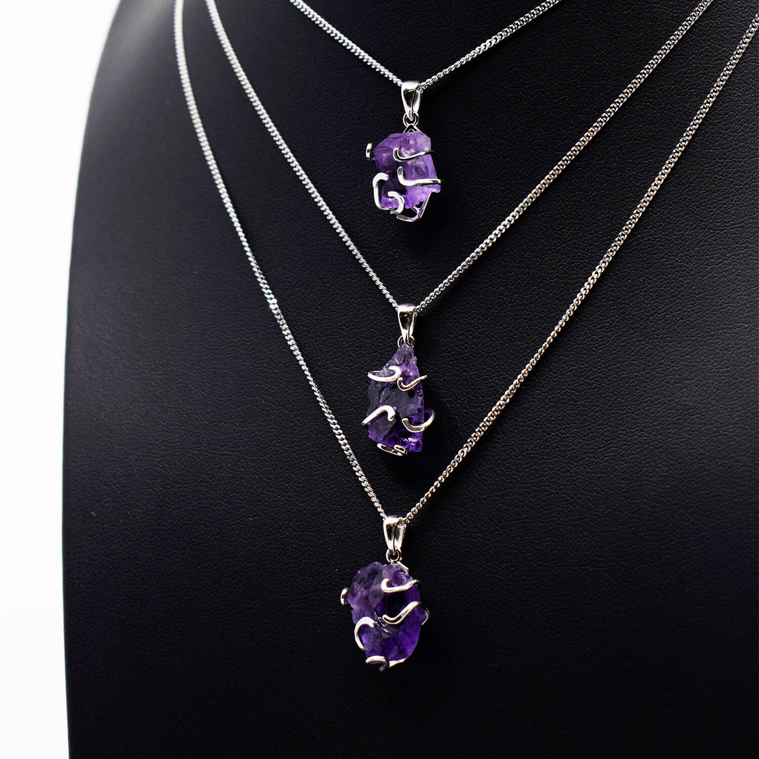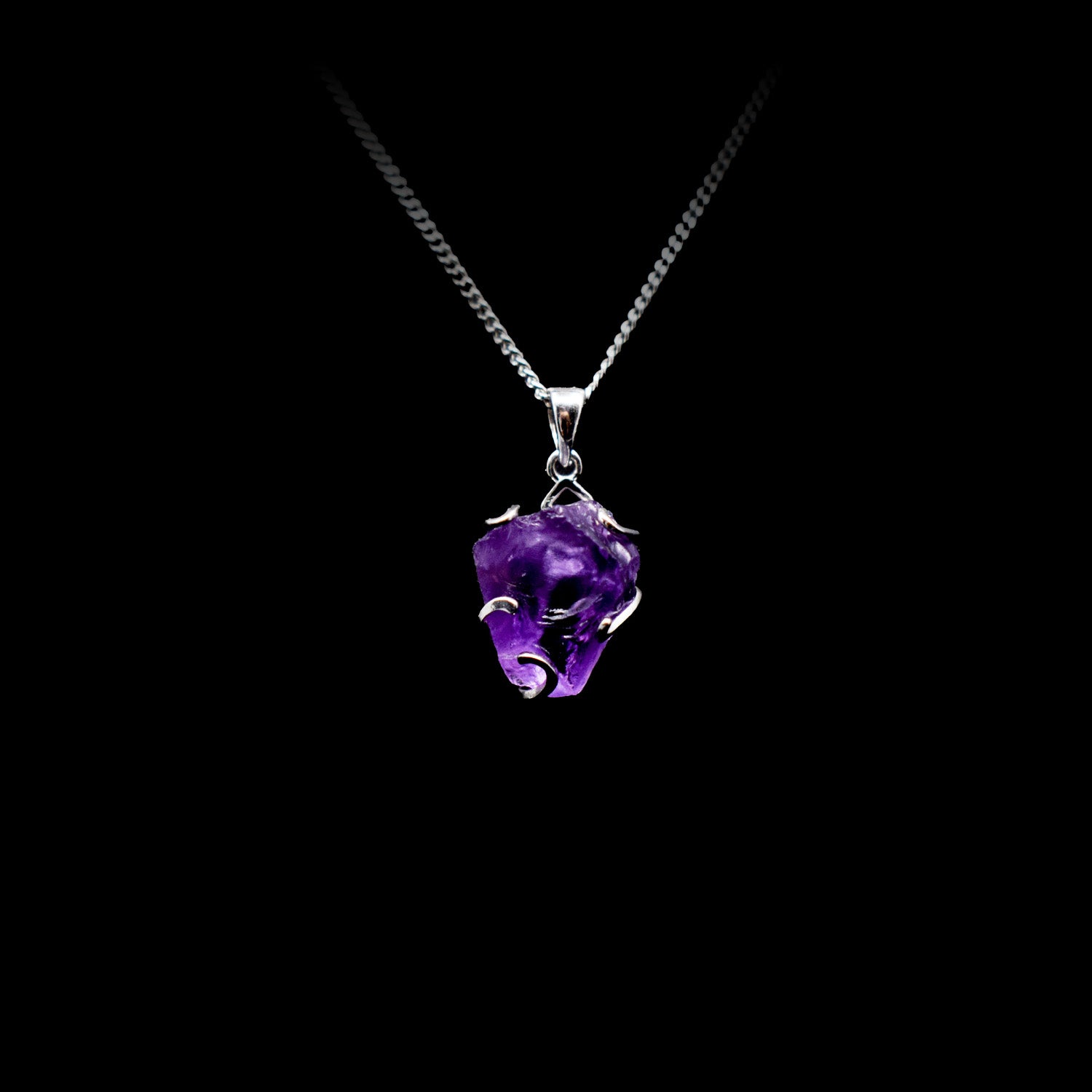 Handgefertigt in der Schweiz aus feinem 925er Sterling-Silber (rhodiniert) und einem seltenen, unbehandelten Amethyst – roh belassen, um die Tiefe seiner violetten Farbnuancen zu bewahren und die natürliche Verbindung von Ruhe und innerer Stärke spürbar zu machen.