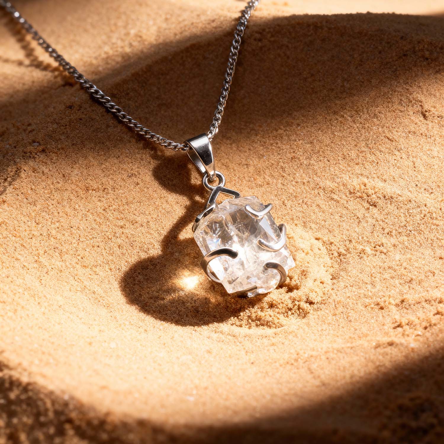 Jedes Collier dieser Kollektion ist ein unverwechselbares Unikat. Im Zentrum steht ein unbehandelter Champagner-Topas – roh belassen, um seine feine Farbe und sanfte Ausstrahlung in ihrer natürlichen Schönheit zu zeigen. Der seltene Edelstein spricht alle an, die ihre Ruhe und Kraft aus sich selbst schöpfen. Dieses Collier ist mehr als Schmuck. Es steht für Gelassenheit, Tiefe und Souveränität.