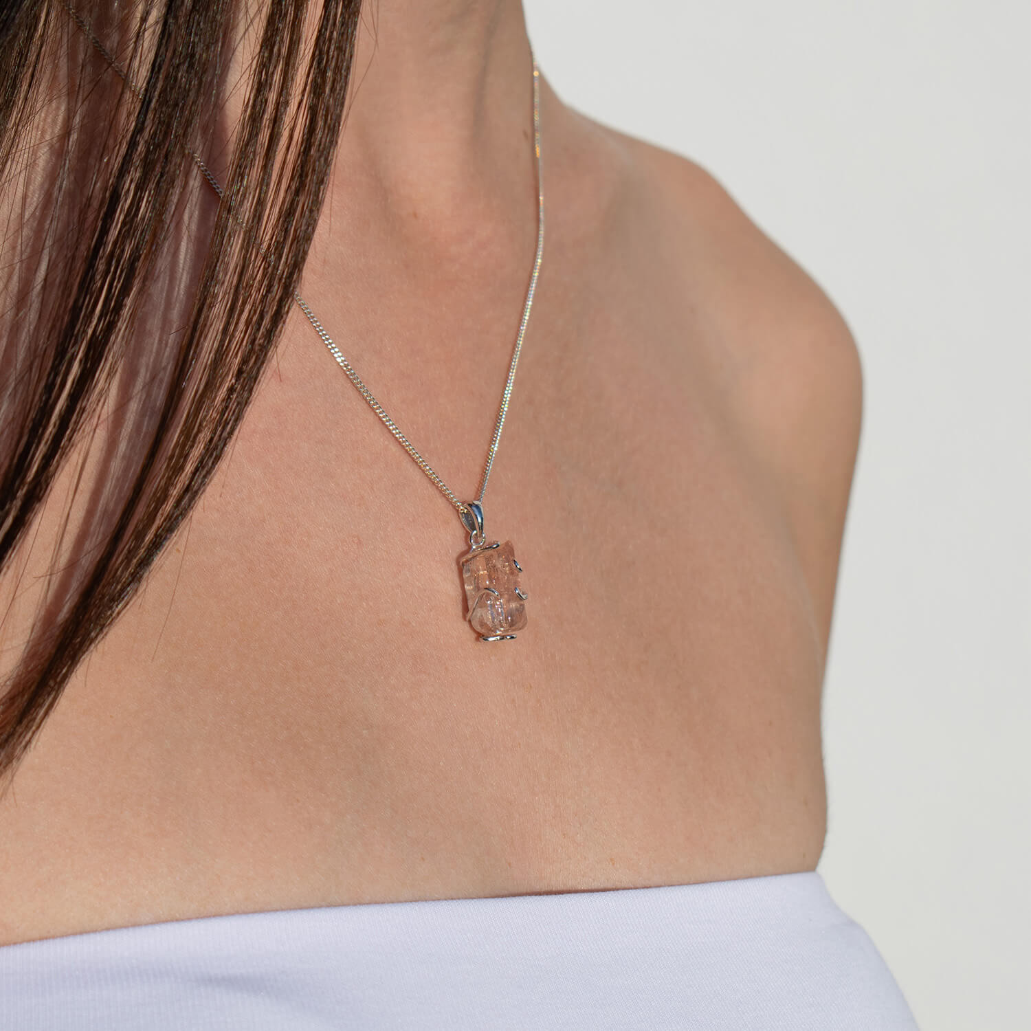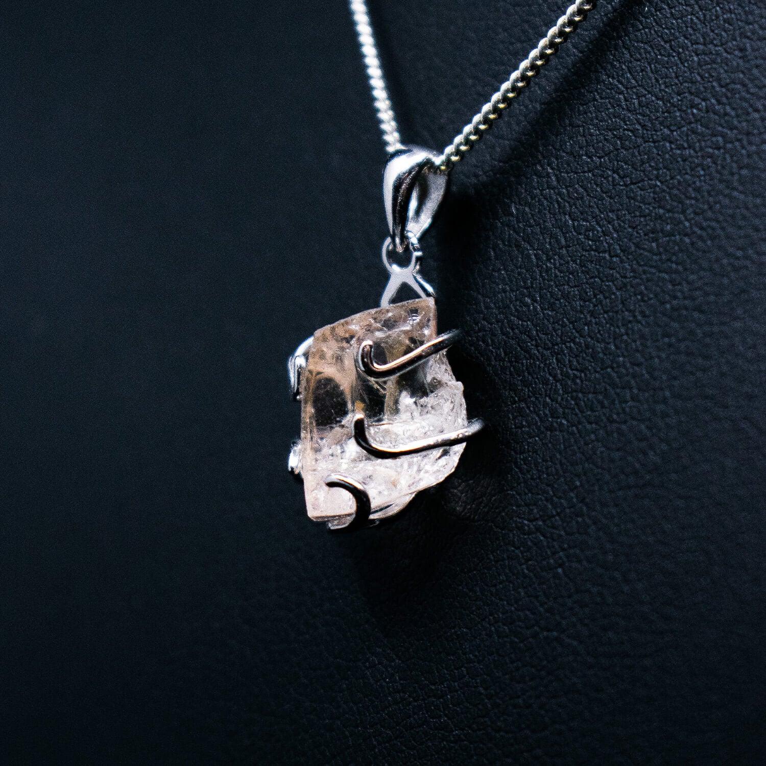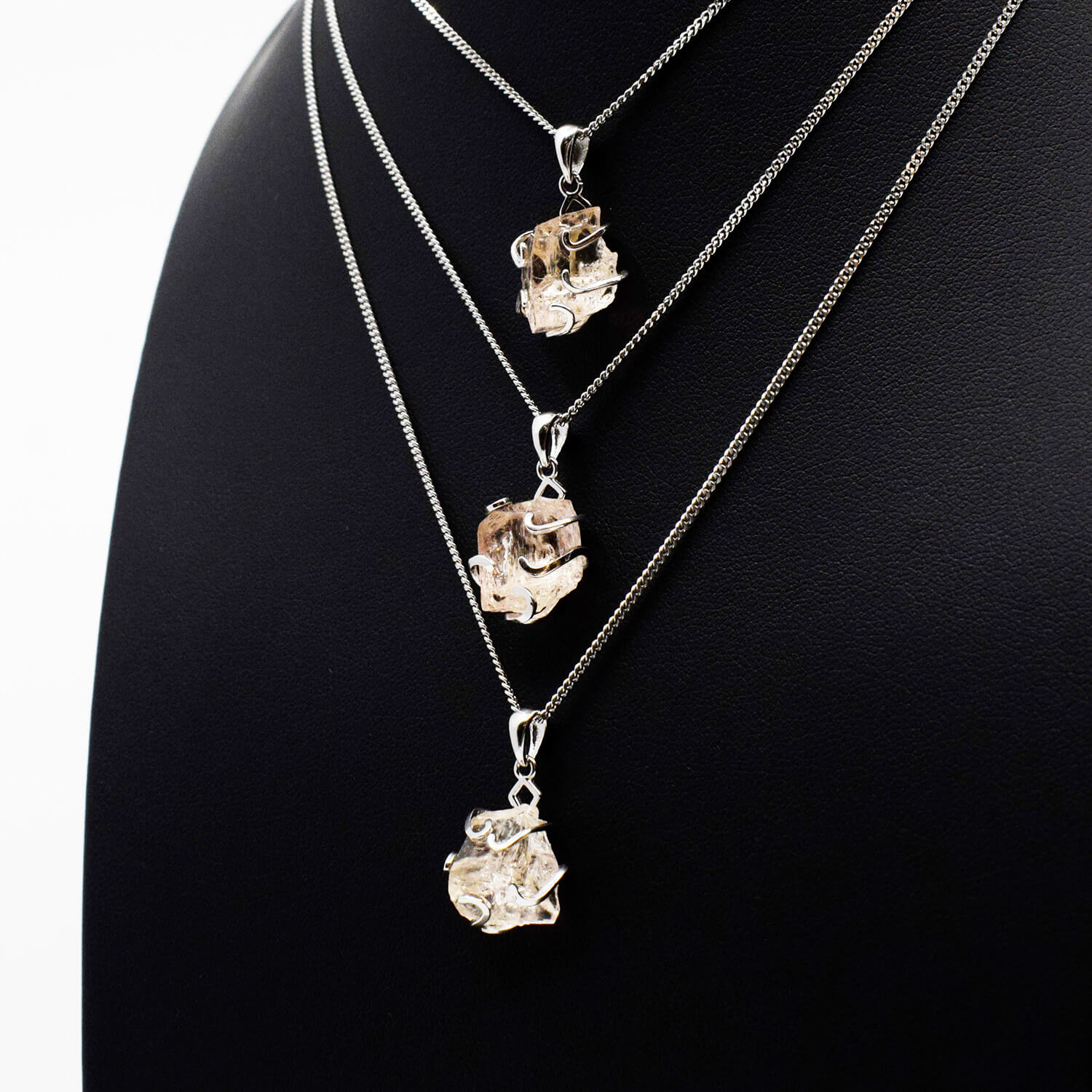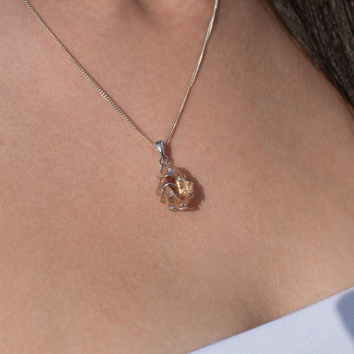 1x Collier: Champagner Topas in natürlicher, unberührter Form, gefasst in 925er Sterling-Silber. Halskette inklusive.