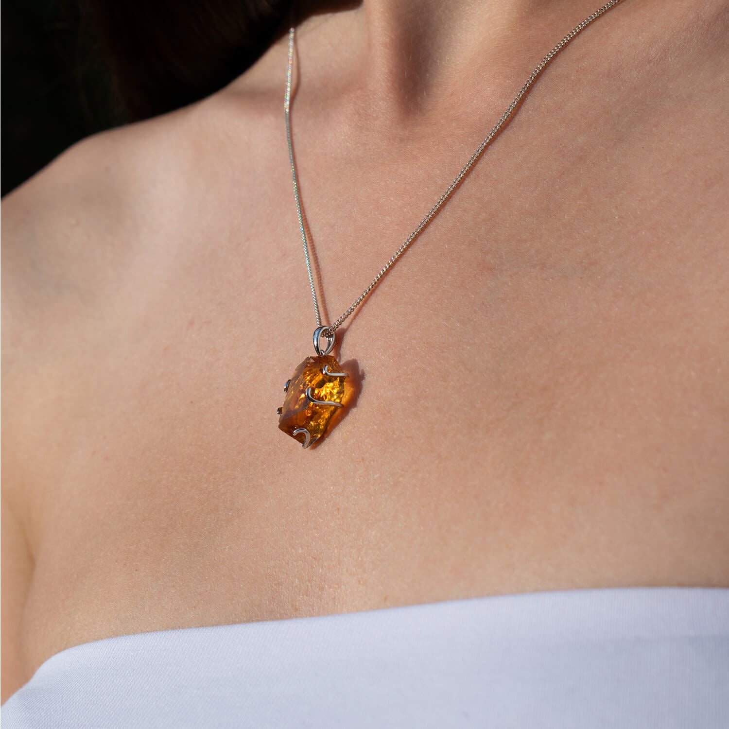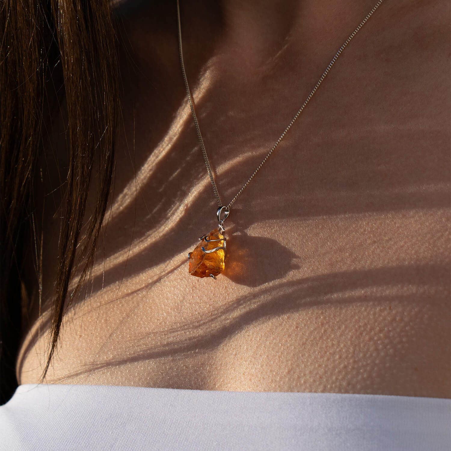 Jedes Collier dieser Kollektion ist ein unverwechselbares Unikat. Im Zentrum steht ein über Millionen von Jahren gewachsener Citrin – selten, unbehandelt und ungeschliffen um seine natürliche Leuchtkraft zu entfalten. Er zeigt die sonnige Seite der Natur und spricht alle an, die Klarheit suchen und ihren Weg mit innerer Stärke und Zuversicht gehen wollen. Dieses Collier ist mehr als Schmuck. Es steht für Licht, Leichtigkeit und Selbstvertrauen.