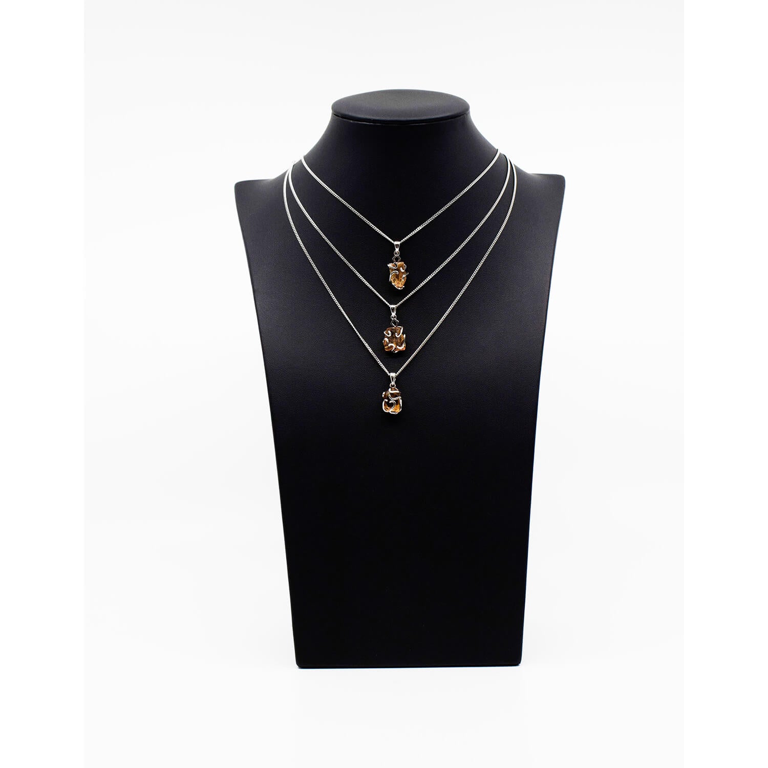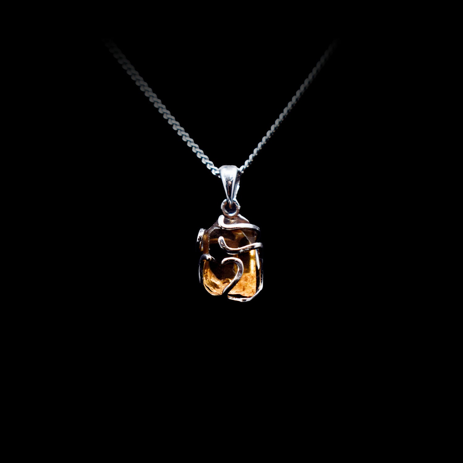 Handgefertigt in der Schweiz aus feinem 925er Sterling-Silber (rhodiniert) und einem seltenen, unbehandelten Imperial-Topas – roh belassen, um seinen warmen, goldenen Glanz in seiner reinen Form zu bewahren und die Verbindung von Strahlkraft und innerer Stärke spürbar zu machen.