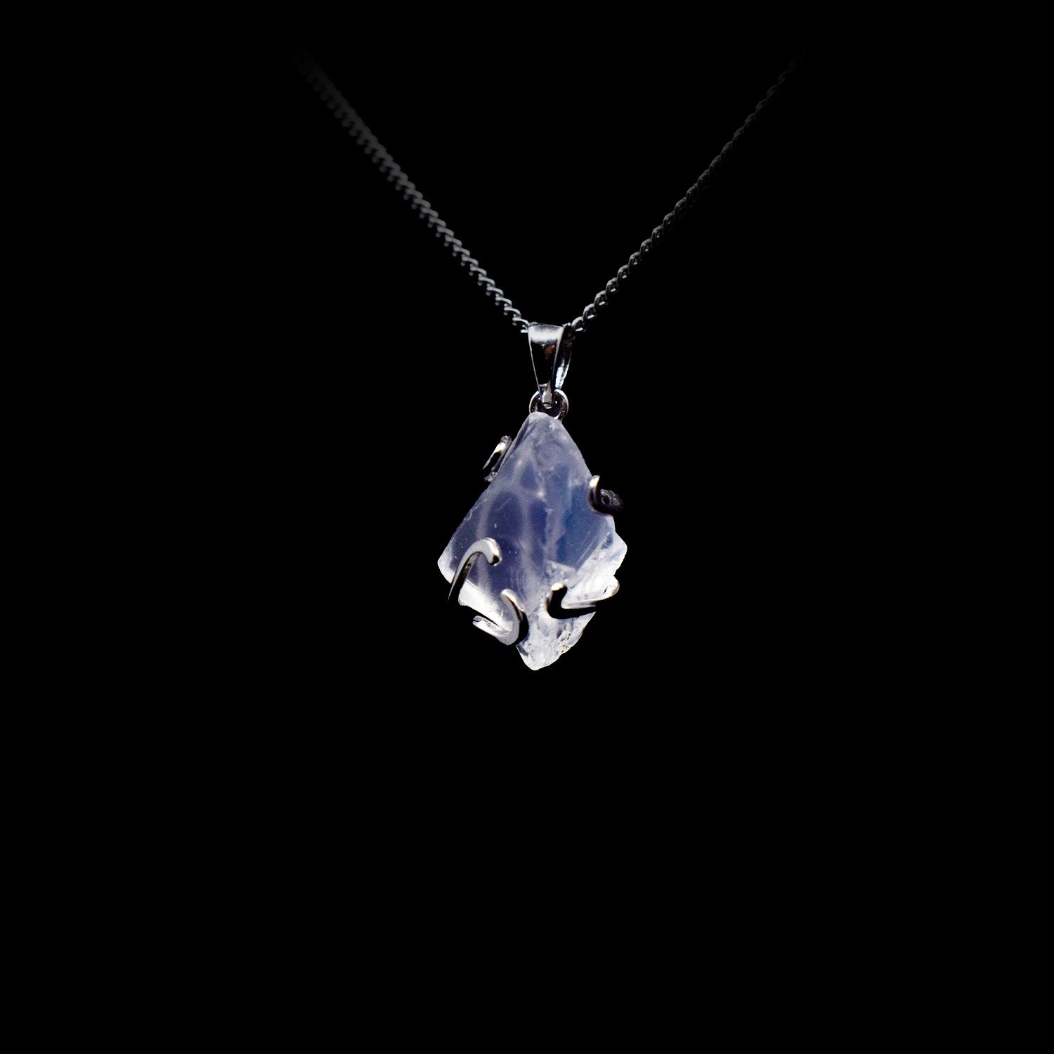 1x Collier: Blauer Apatit in natürlicher, unberührter Form, gefasst in 925er Sterling-Silber