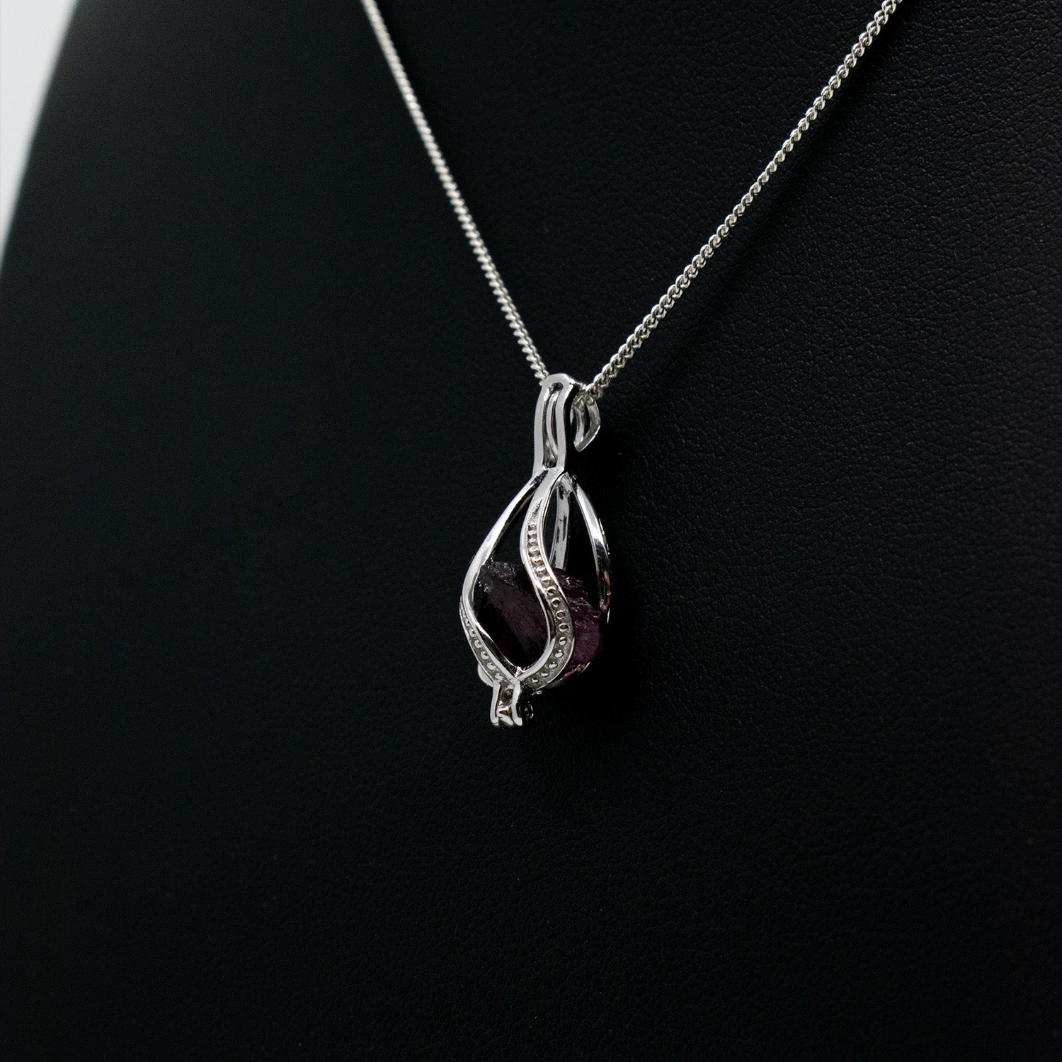 1x Collier: Rhodolith-Granat in natürlicher, unberührter Form, gefasst in 925er Sterling-Silber